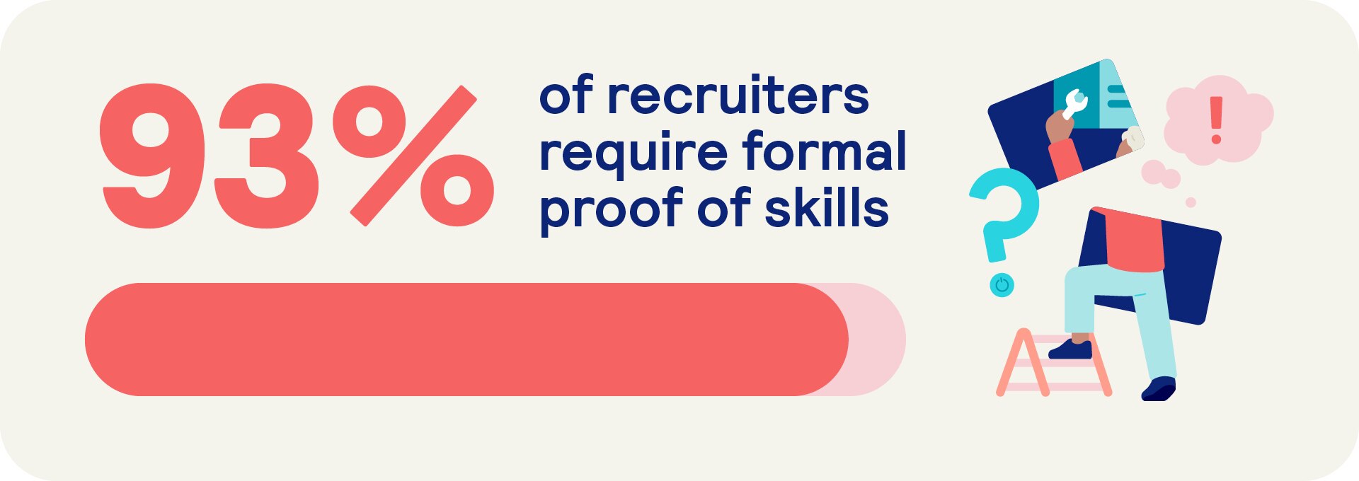 Instead, skills-based hiring evaluates candidates on the actual competencies and capabilities they bring to the table. This shift is reflected in 40% of businesses requiring formal proof of skills, while over half (53%) require it depending on the role. Moreover, 57% of businesses have implemented structured skills assessments as part of their recruitment process.